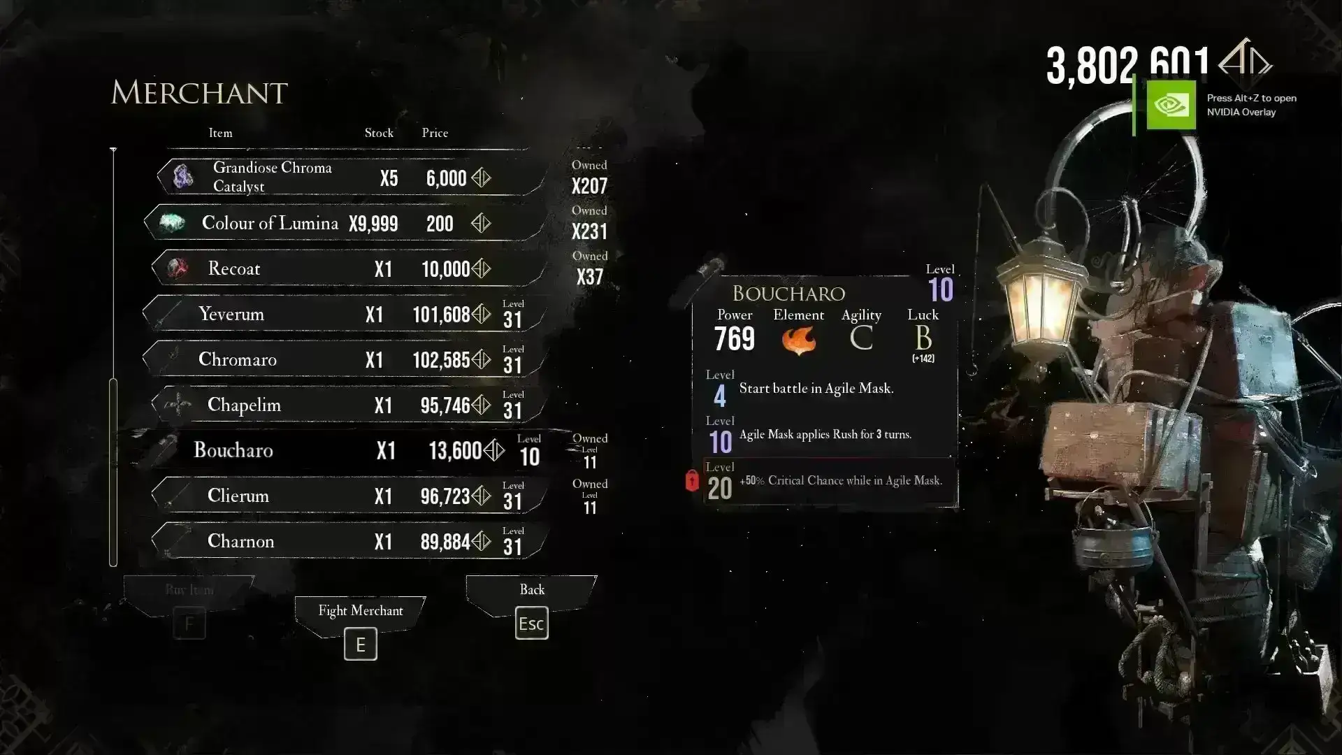 重新启动游戏,现在Grour将售卖Lumina和稀有物品