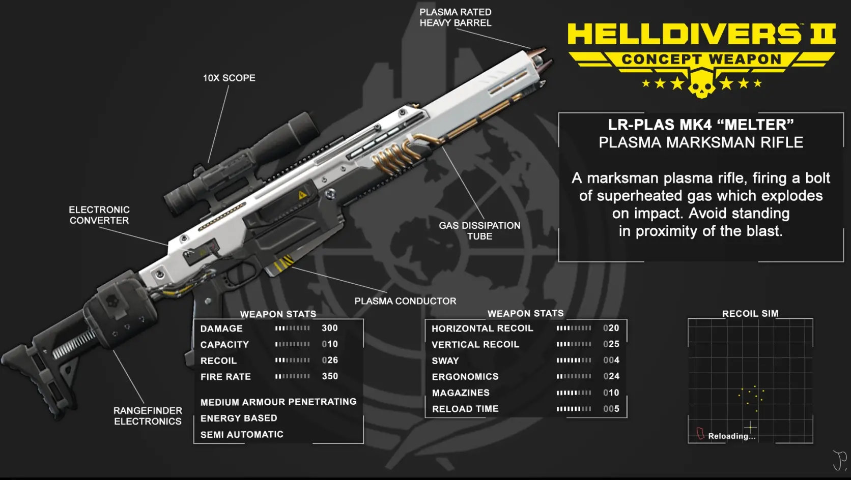 为《绝地潜兵2》玩家打造的科幻武器MOD,将R-63勤勉步枪及其反击版本替换为等离子熔解步枪,由概念设计师BonelessMan创作: