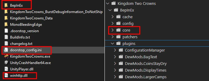 例如 “../SteamLibrary/steamapps/common/Kingdom Two Crowns/BepInEx/plugins/DewMods.CoinsStayDry/DewMods.CoinsStayDry.dll“