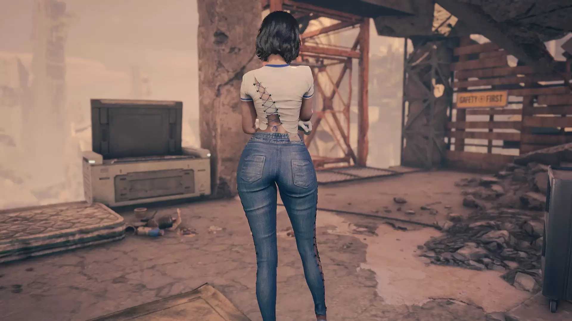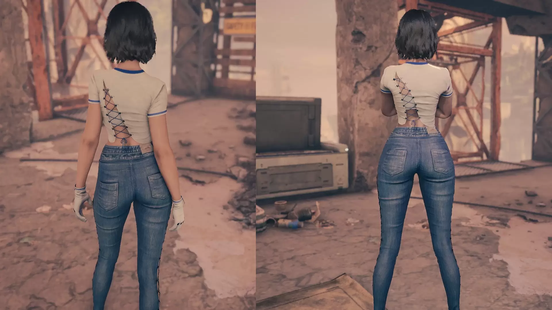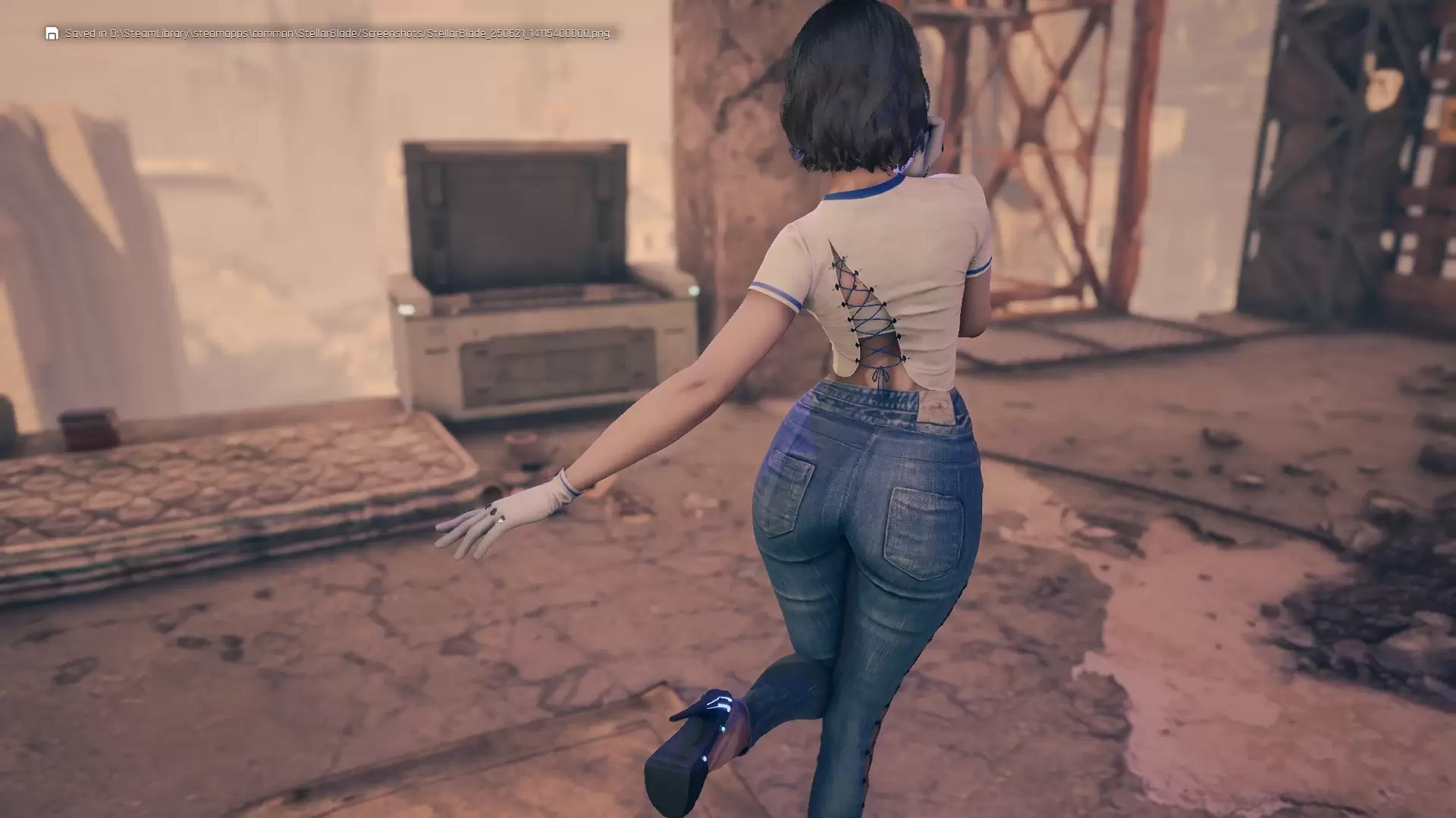 ▍ 这MOD能做什么?本MOD通过高级模型替换技术,全面重制《剑星》主角Eve的默认牛仔裤装束,打造出更修身立体的臀部曲线和逼真破洞细节。不同于简单的纹理替换,此修改直接作用于角色骨骼绑定系统,确保动态场景下服装变形自然流畅,完美适配各种战斗动作和过场动画。
