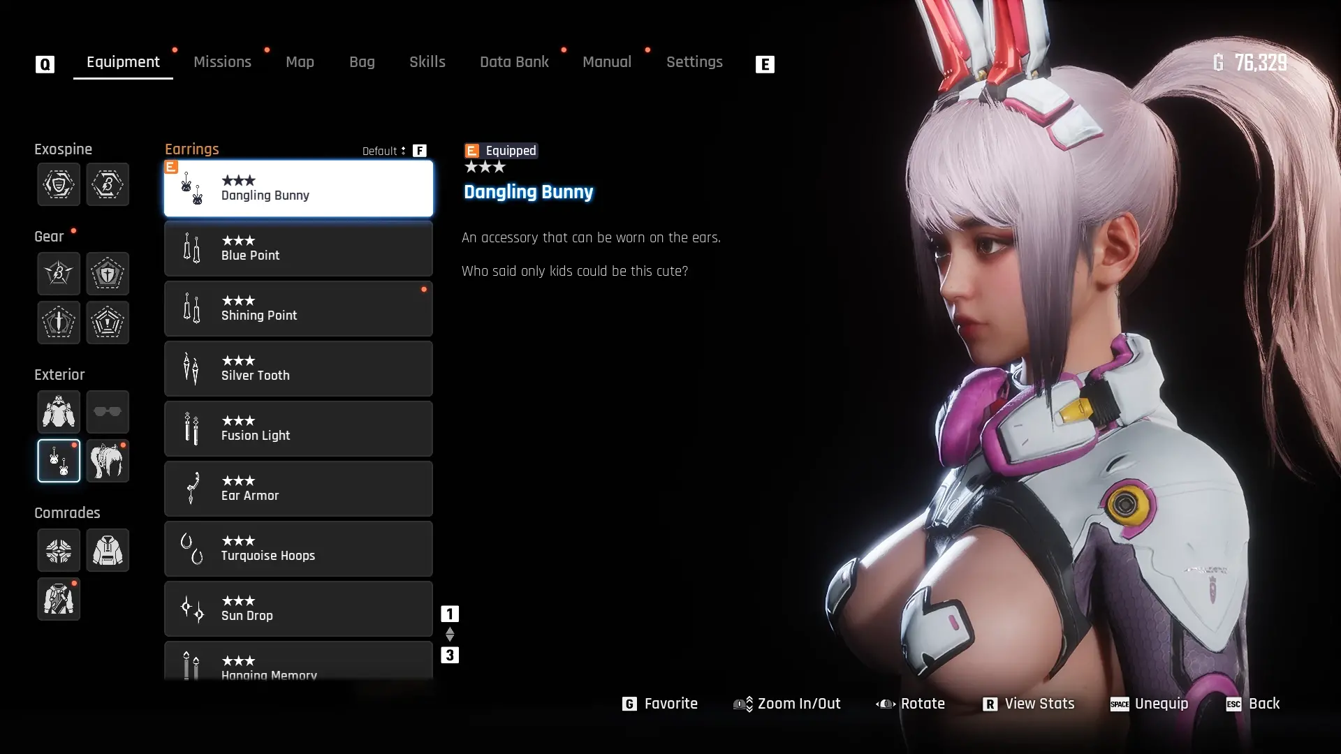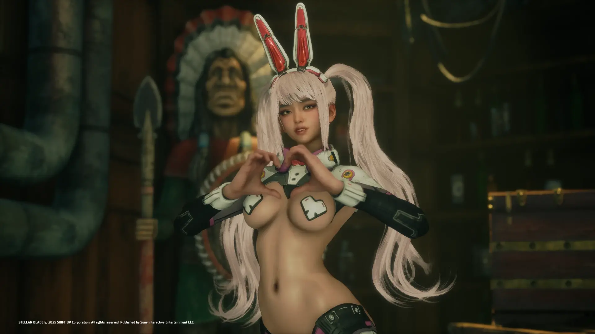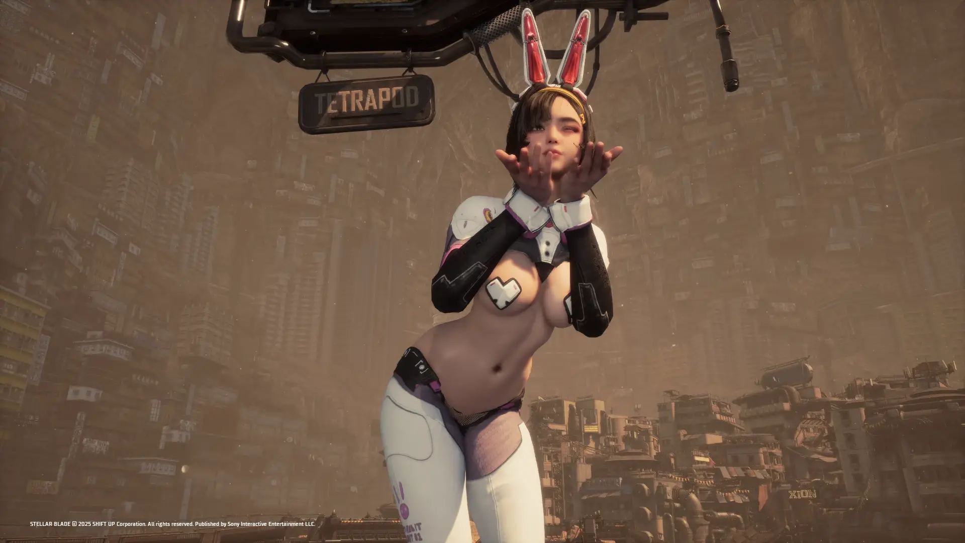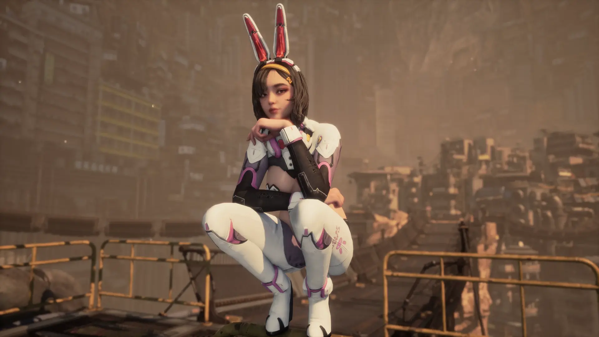 《剑星》跨游戏联动内容:将赛博兔女郎套装及耳饰替换为《Eros崛起》中Alana的钢铁兔战衣及兔耳配饰。