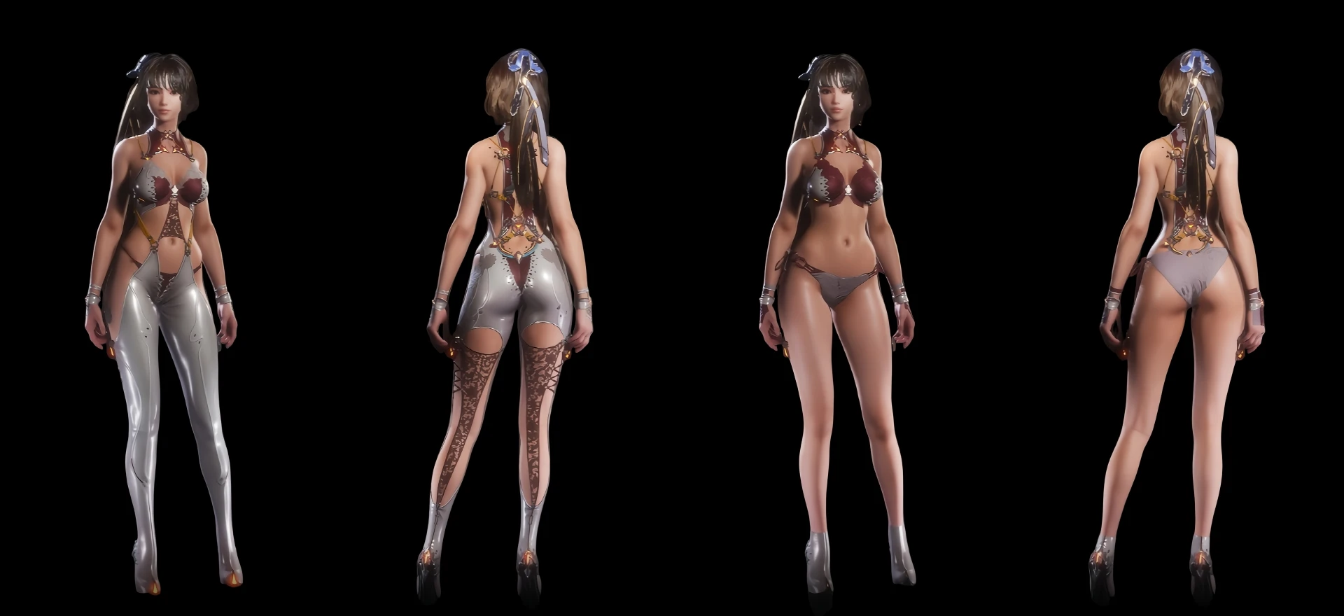 👉 个人体验:这个MOD让A7套装的视觉效果大幅提升,特别是移除了厚重的皮革长袜后,角色动作更加自然流畅,网状内裤的细节也很精致。