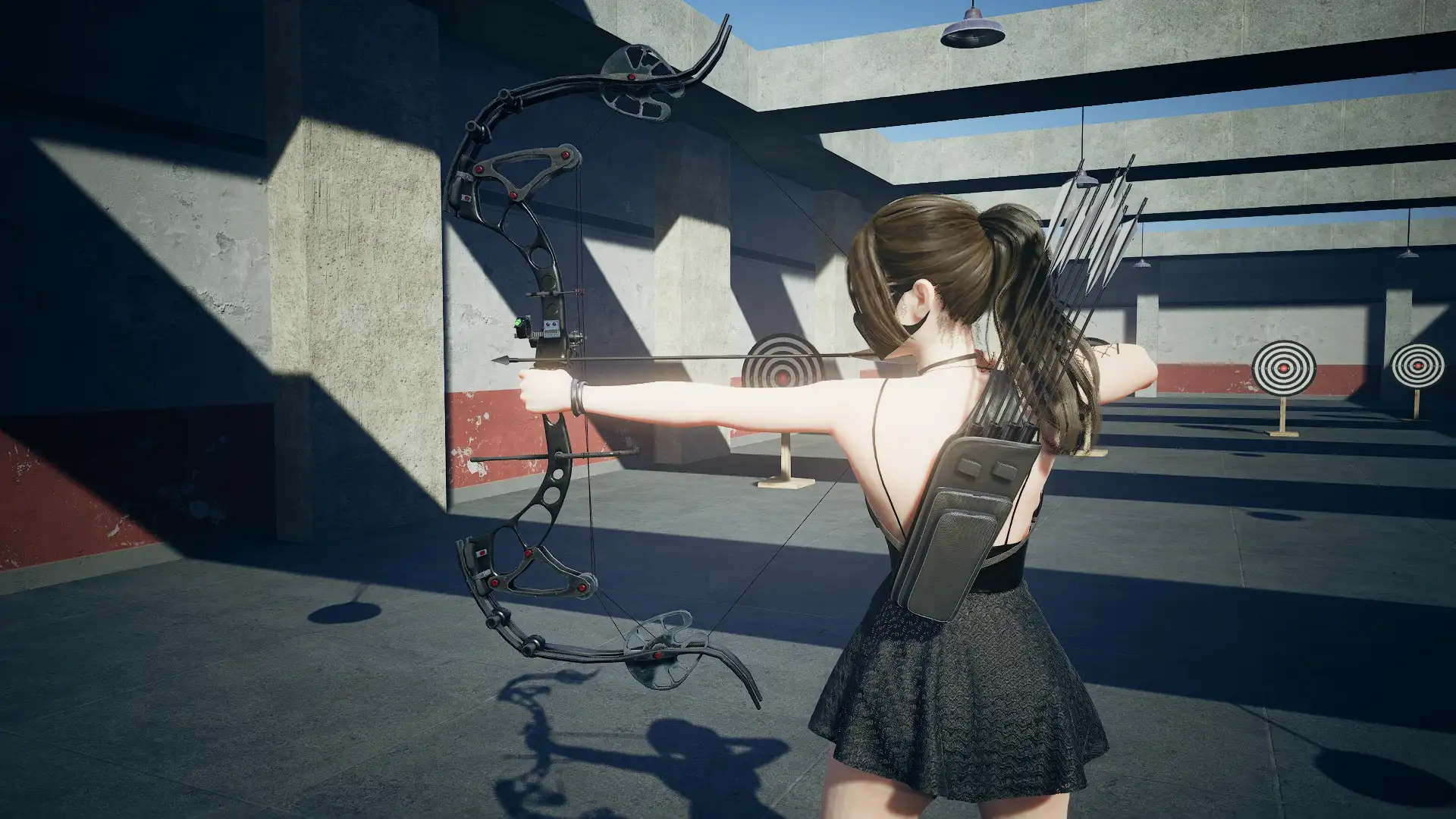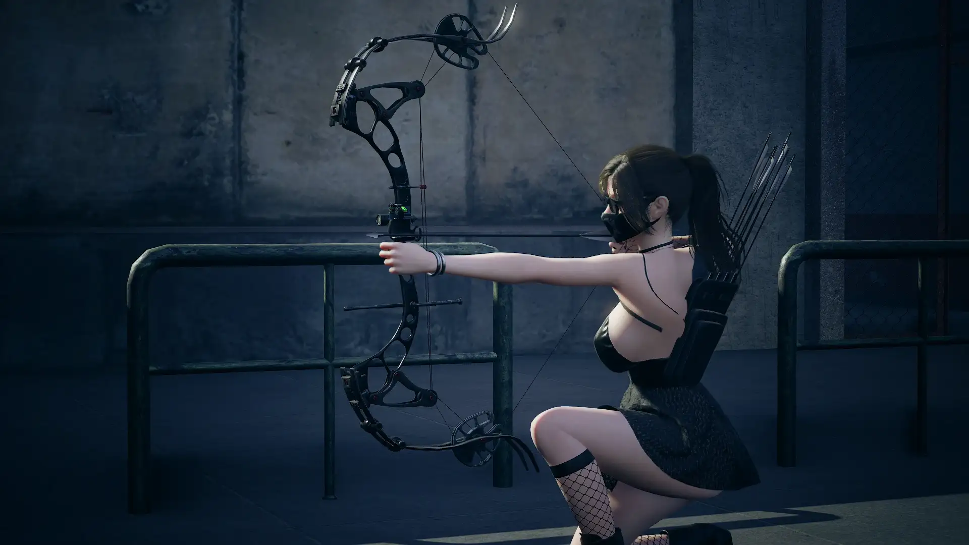 滑轮组、弓弦阻尼器、战术瞄具全部还原;碳纤维纹理清晰,金属边缘倒角处理到位。第一人称视角下,拉弓时滑轮会随动画轻微旋转,沉浸感拉满。