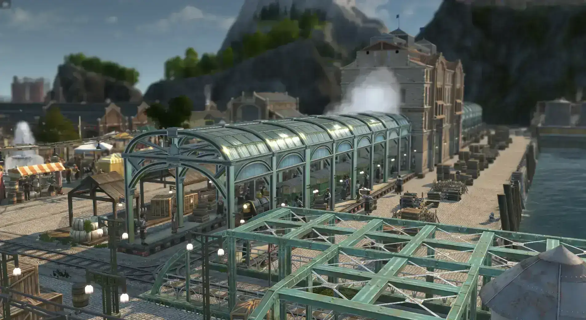 模块化设计:提供港口和陆地的功能性铁路、工业装饰、仓库棚屋等完整系统