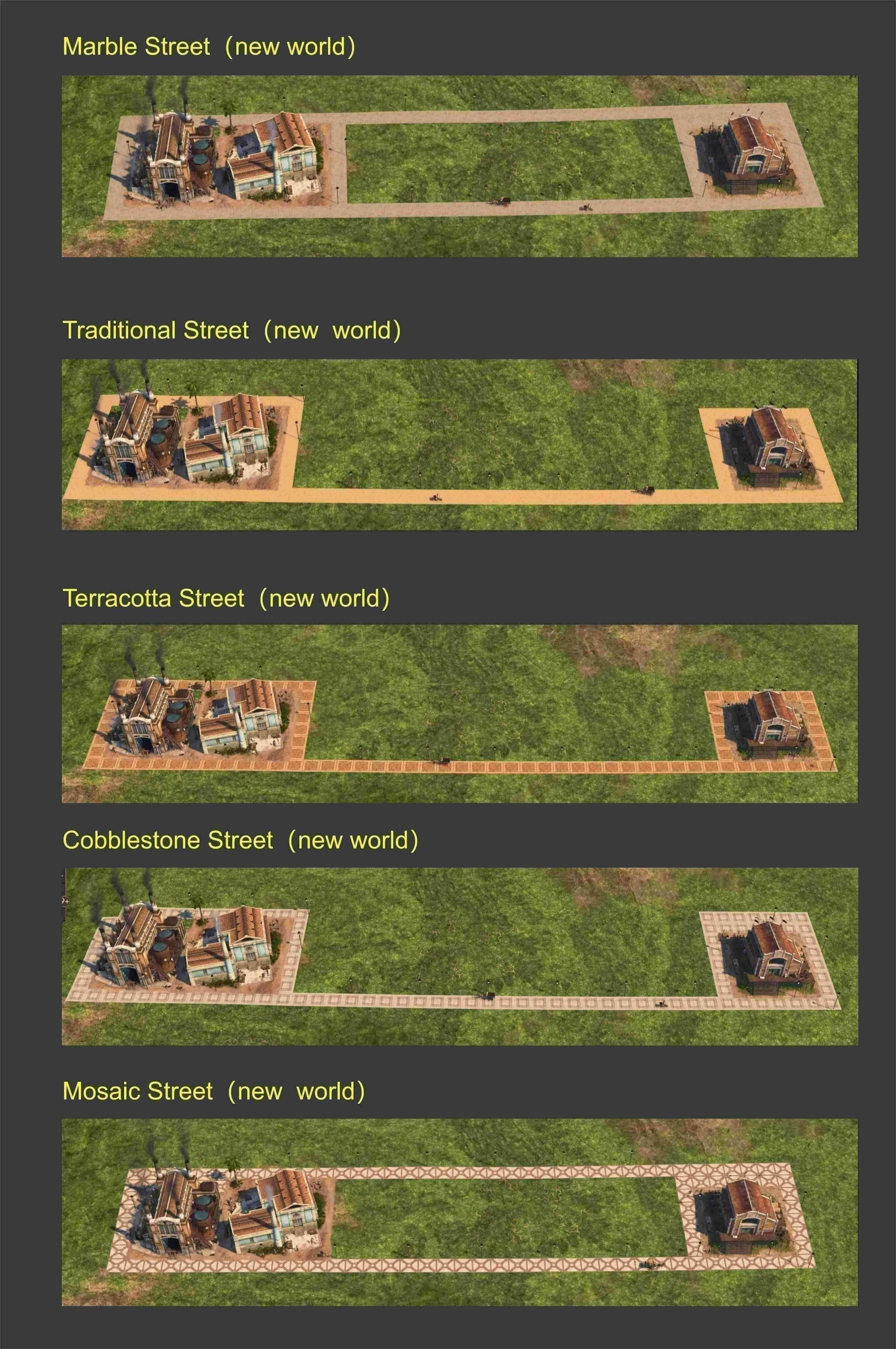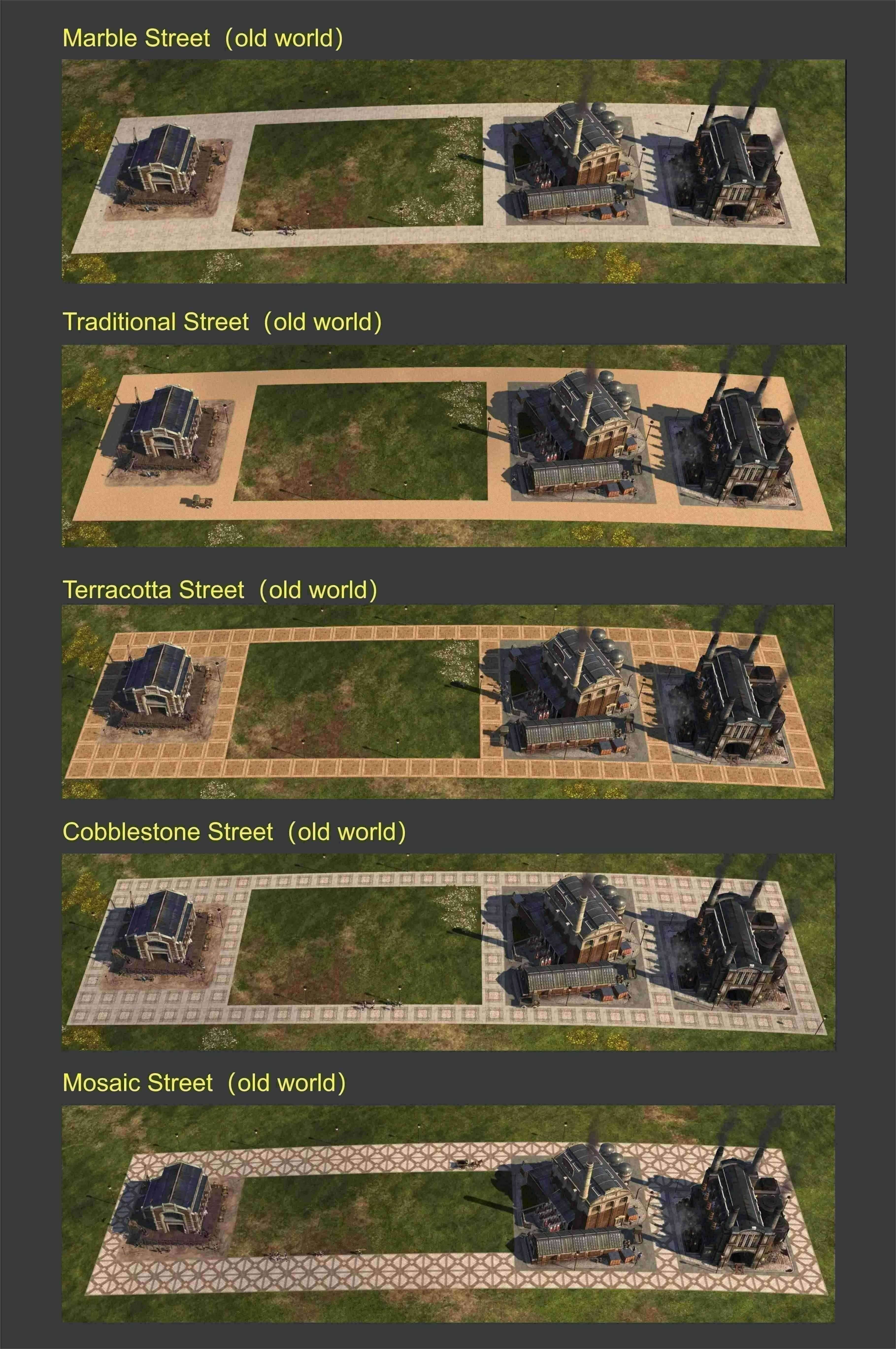 增加了 5 条新街道 这些街道不仅是装饰型的,而且可以连接所有的【生产】、【住宅】【文化】建筑,就像普通的铺砌街道一样