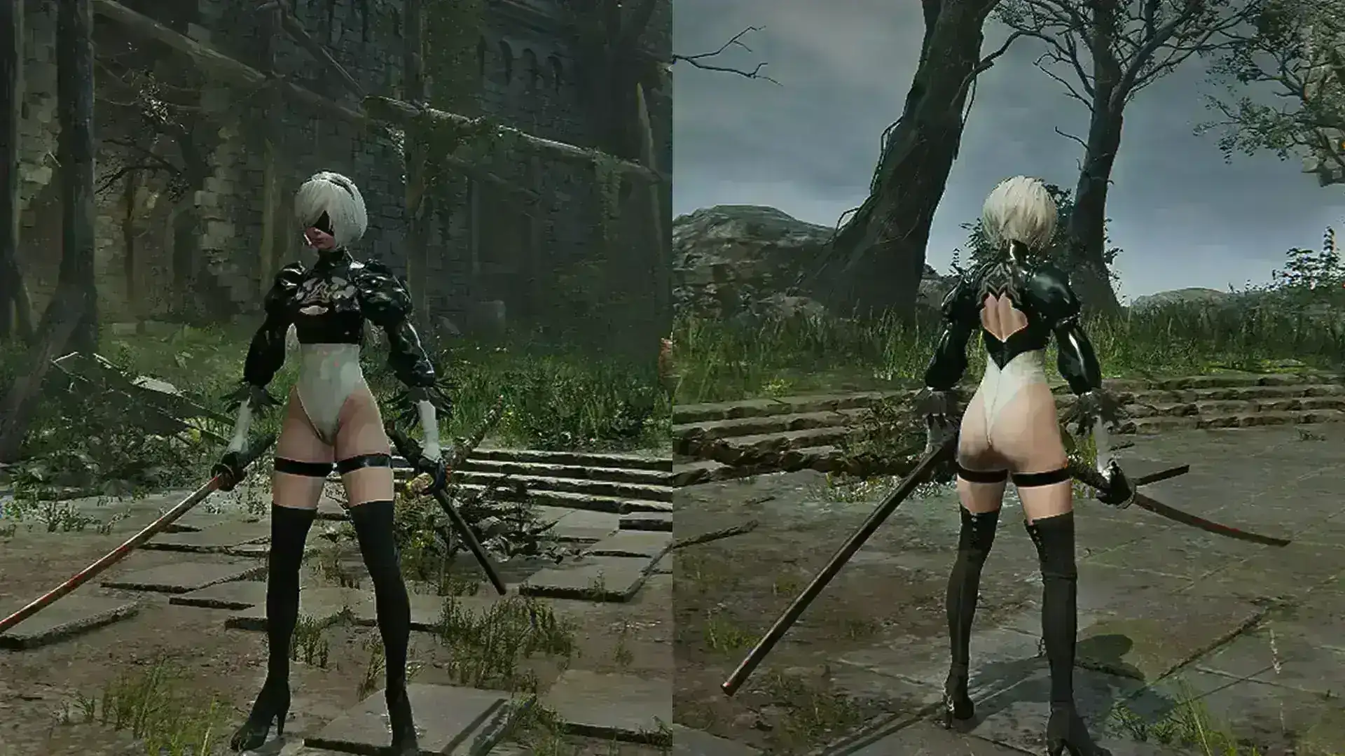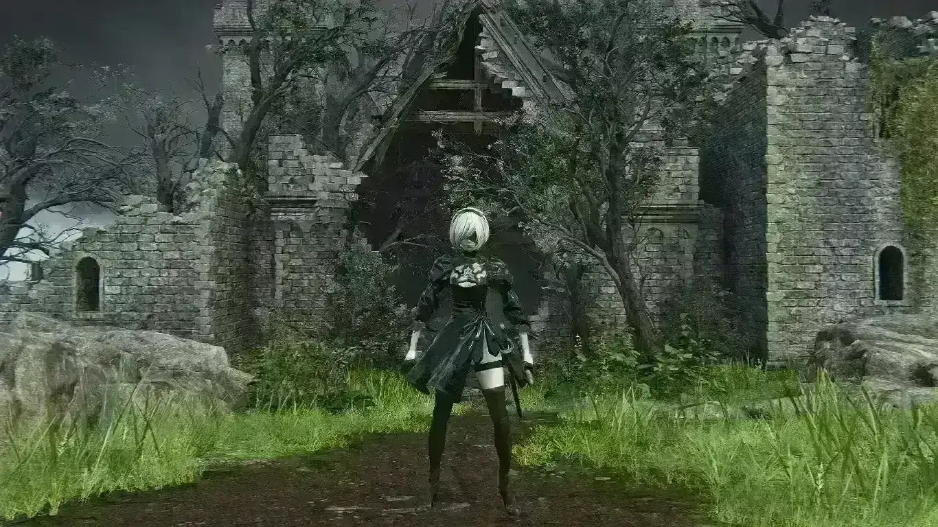 《艾尔登法环:黑夜君临》跨游戏联动内容:将执行者基础皮肤替换为《尼尔:机械纪元》2B角色模型,支持全角色自由替换。