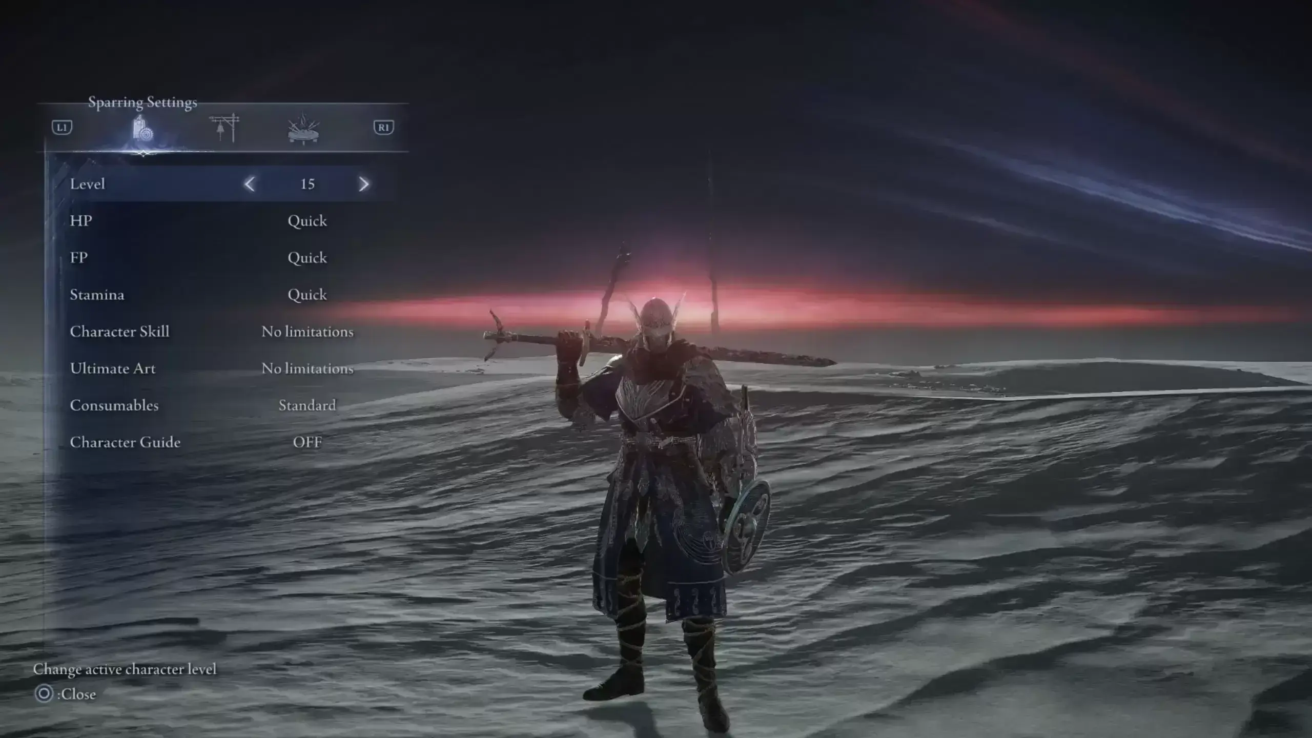 ⚙️ sparring菜单:调整等级/启用快速恢复/切换角色