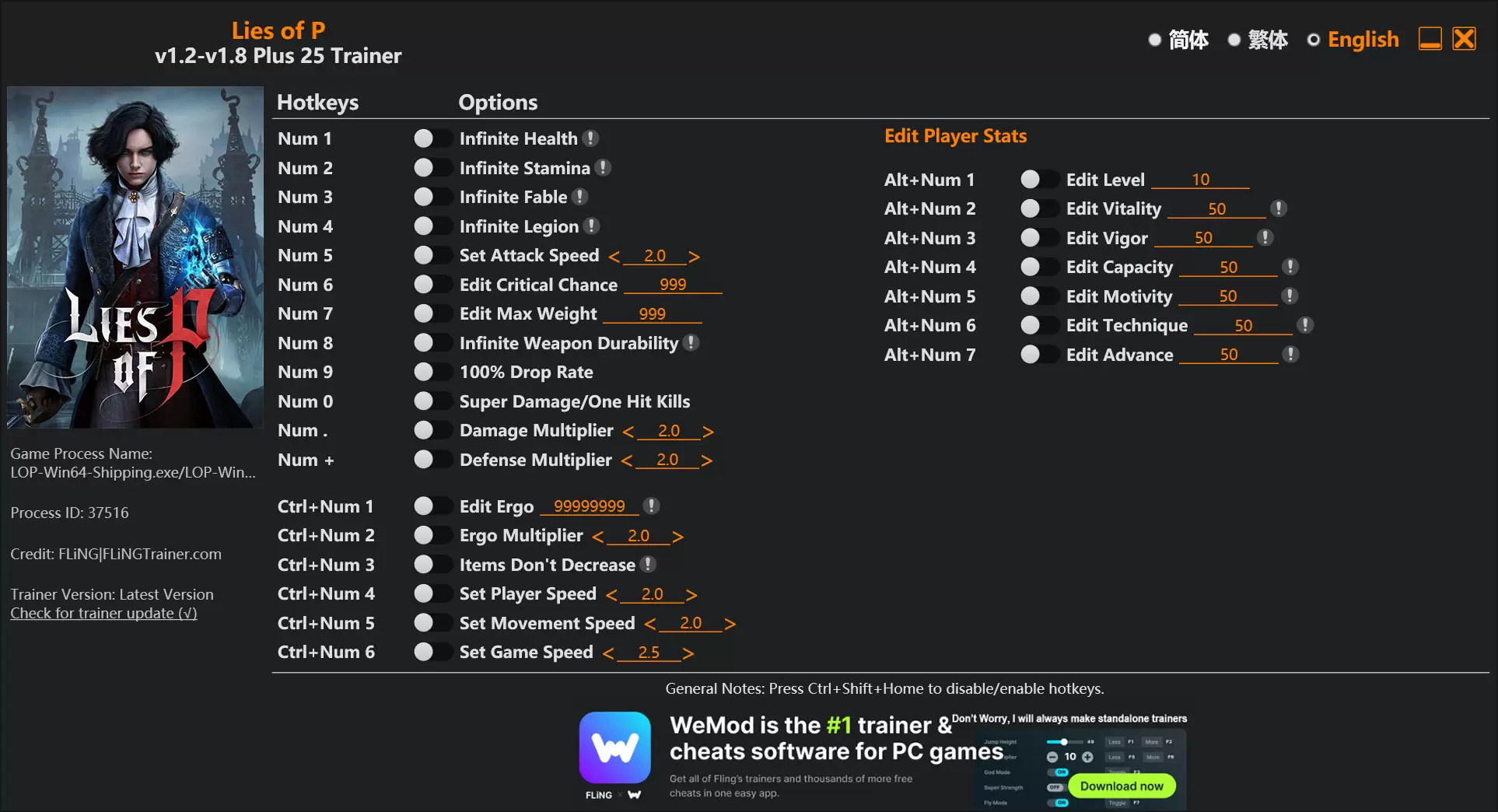 🔥【匹诺曹的谎言】Lies of P多功能辅助工具|25项功能 v1.2-v1.8+兼容✨