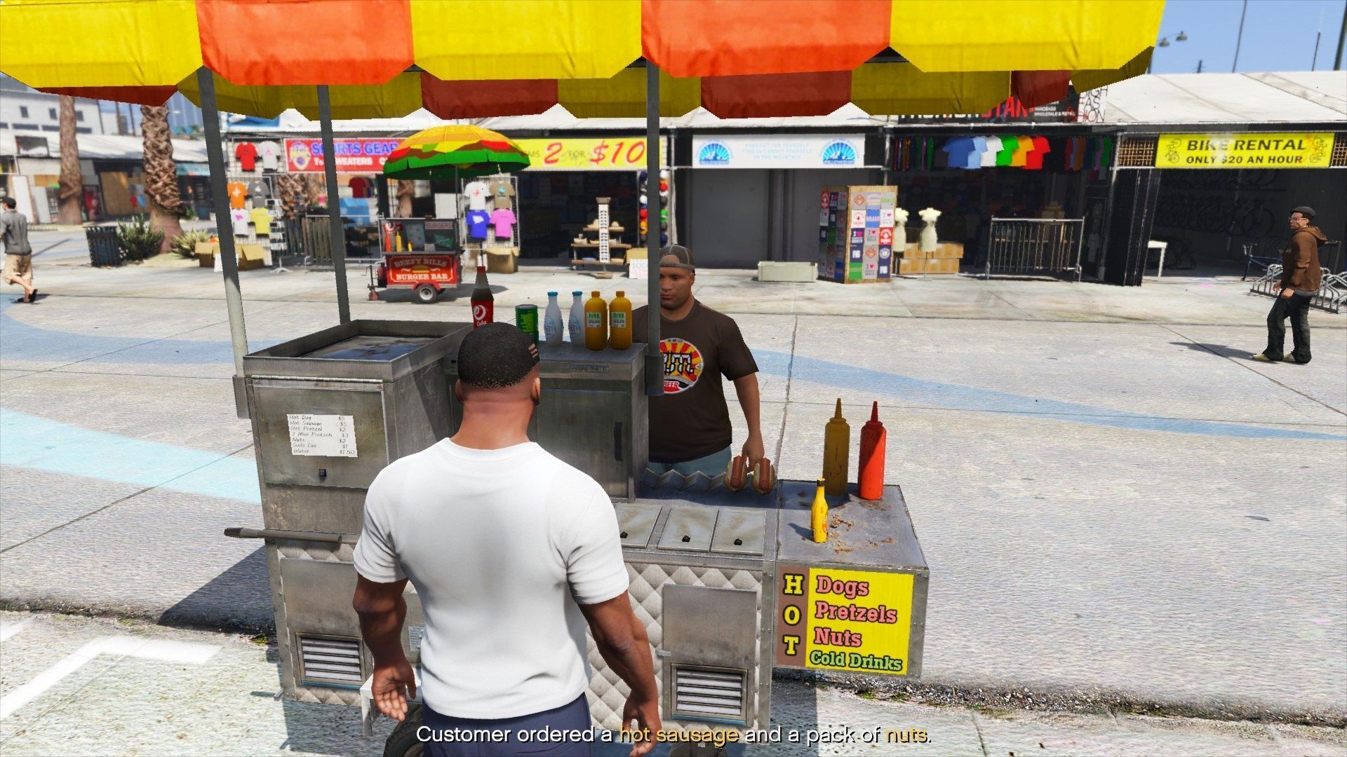 • 行人在附近时会前来购买食物,按H键开始服务。