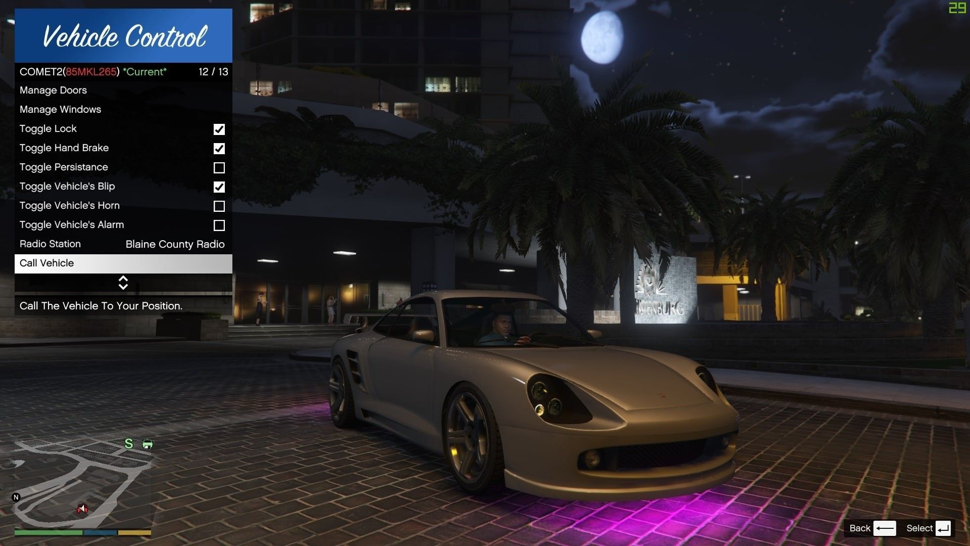 为GTA5添加车辆远程操控功能,包括引擎开关、灯光控制等。