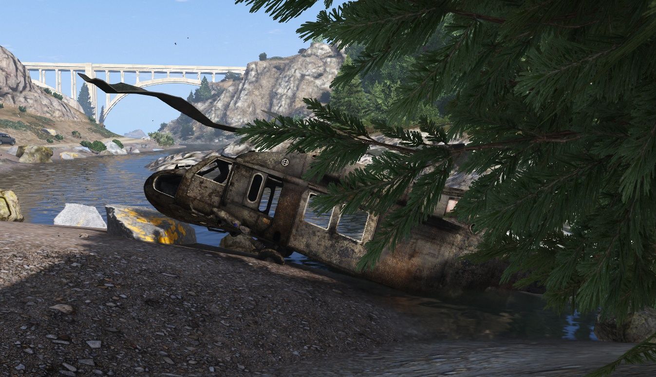 在圣安地列斯山脉中添加一个简单的坠毁黑鹰直升机模型。