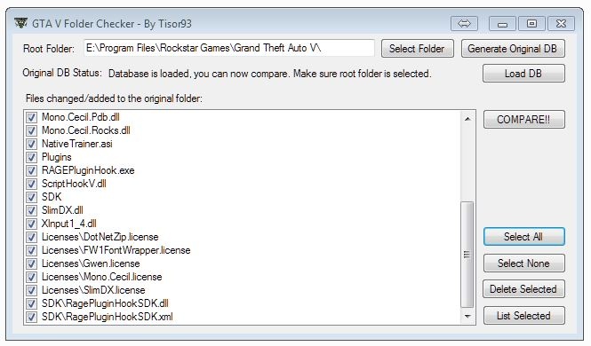 - 打开程序,选择你的 GTA V 根目录。确保选对了路径,点击 `Generate Original DB` 保存文件。