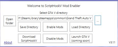 2. 下载并打开 ScriptHookV Mod Enabler 3.1.1。