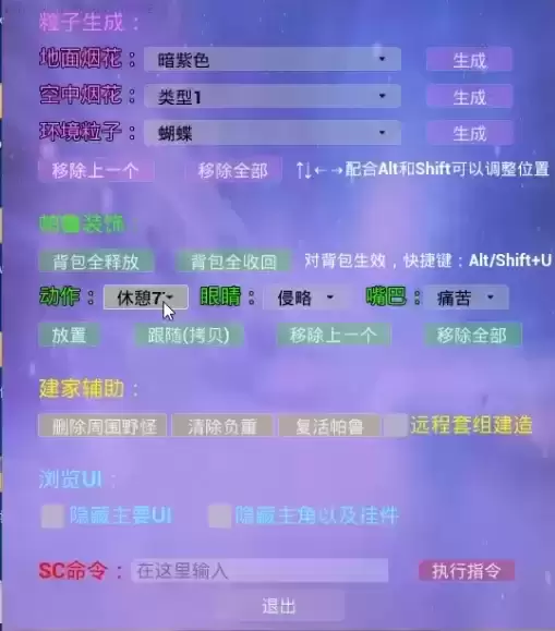 此模组用于生成烟花,粒子等环境特效,以及让你的帕鲁跟随,或者装饰家园,提供一些家园的工具和帮助