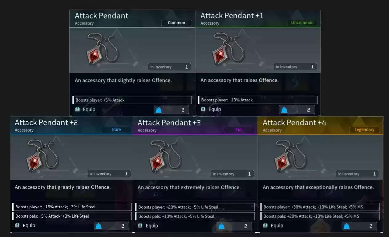 攻击坠饰加成生命坠饰加成