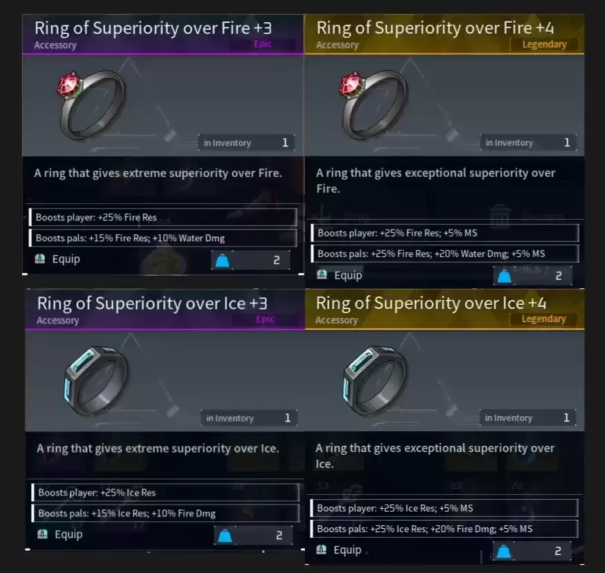 优越之戒 :根据其元素类型从任何朋友那里掉落