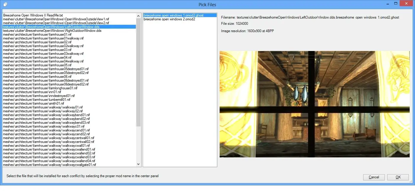 冲突解决:内置文件冲突检测和可视化解决工具,带DDS图片预览