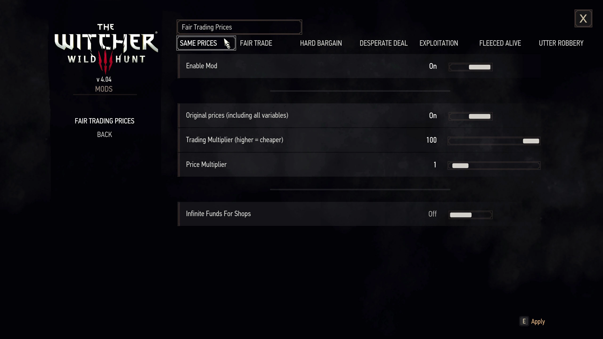 巫师3经济平衡交易价格配置工具 - Fair Trading Prices v1.0.1