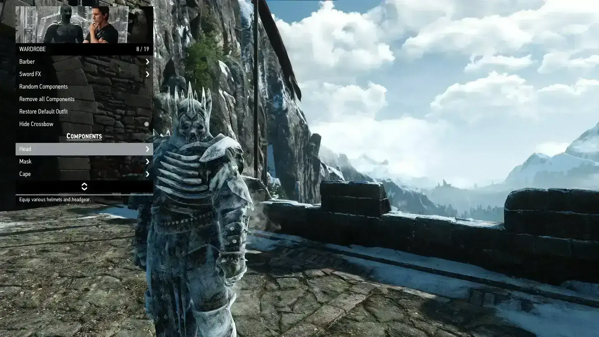 实时更换服装配件,预览传奇套装效果。解决部分护甲缺失纹理问题需配合专用材质MOD。