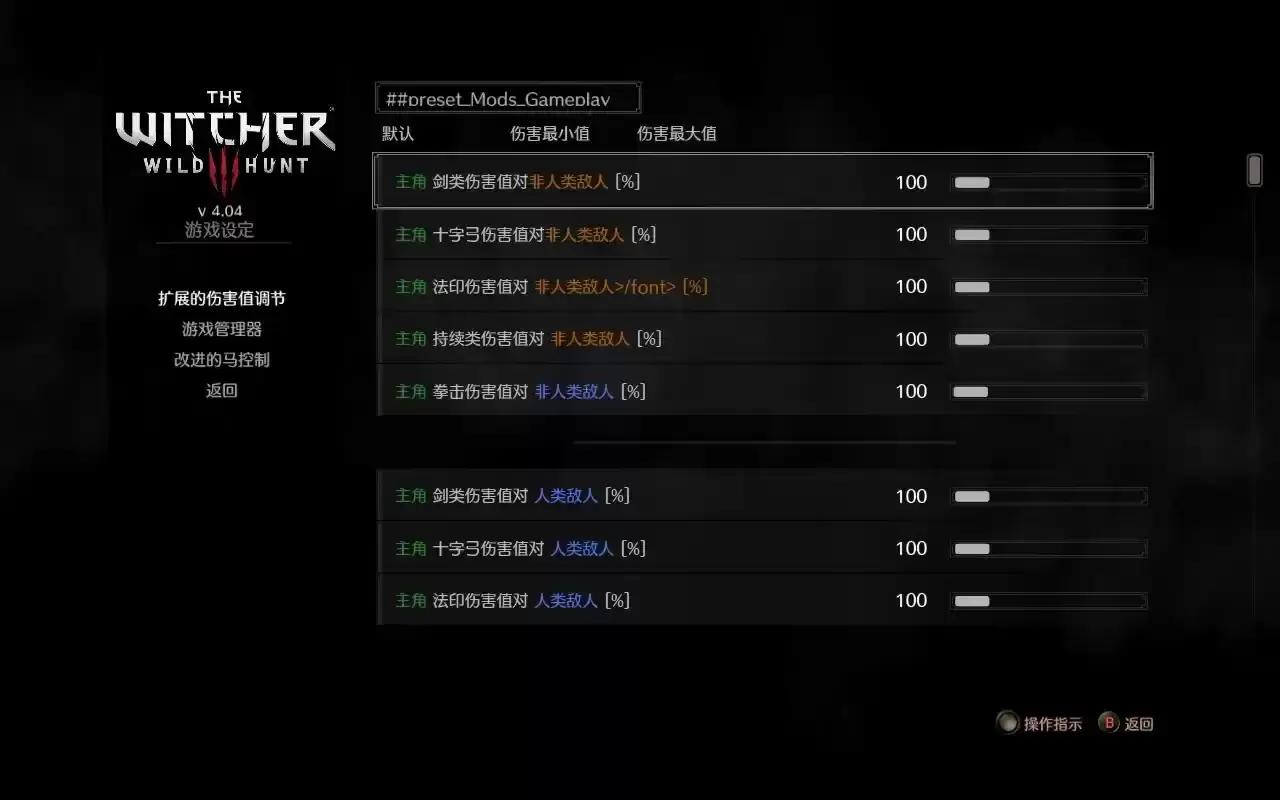 使用方法:Extended Damage Sliders的简中翻译,替换原MOD“cn.w3strings“文件