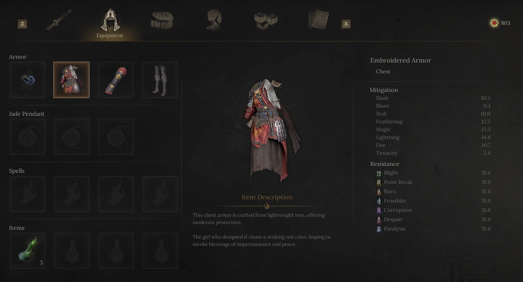 《明末:渊虚之羽》角色模型修改:重塑裸体身型并替换初始绣花护甲套装。
