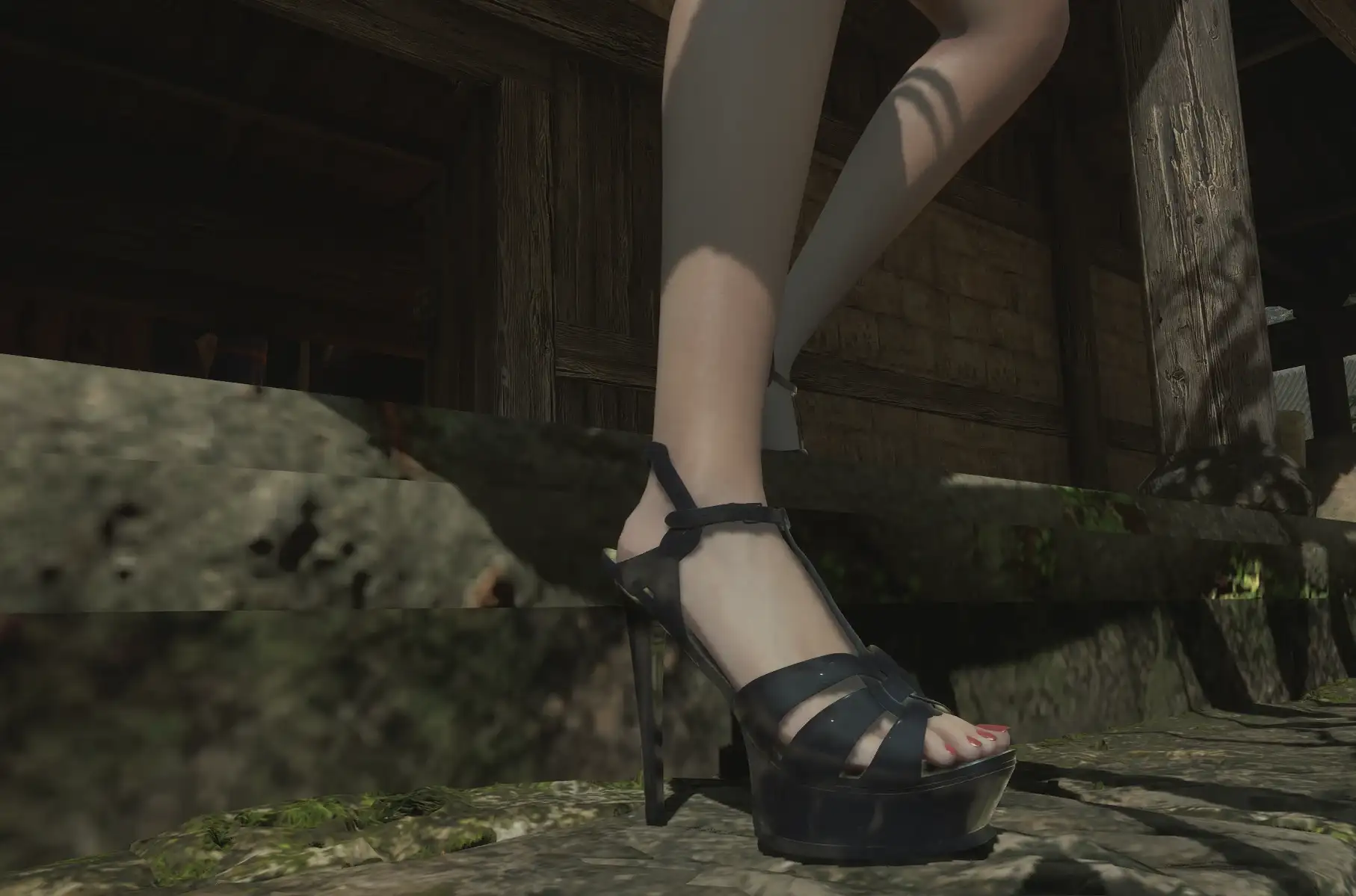 MOD特点:4色防水台高跟鞋+丝袜/光腿可选,完美适配游戏骨骼,无穿模。