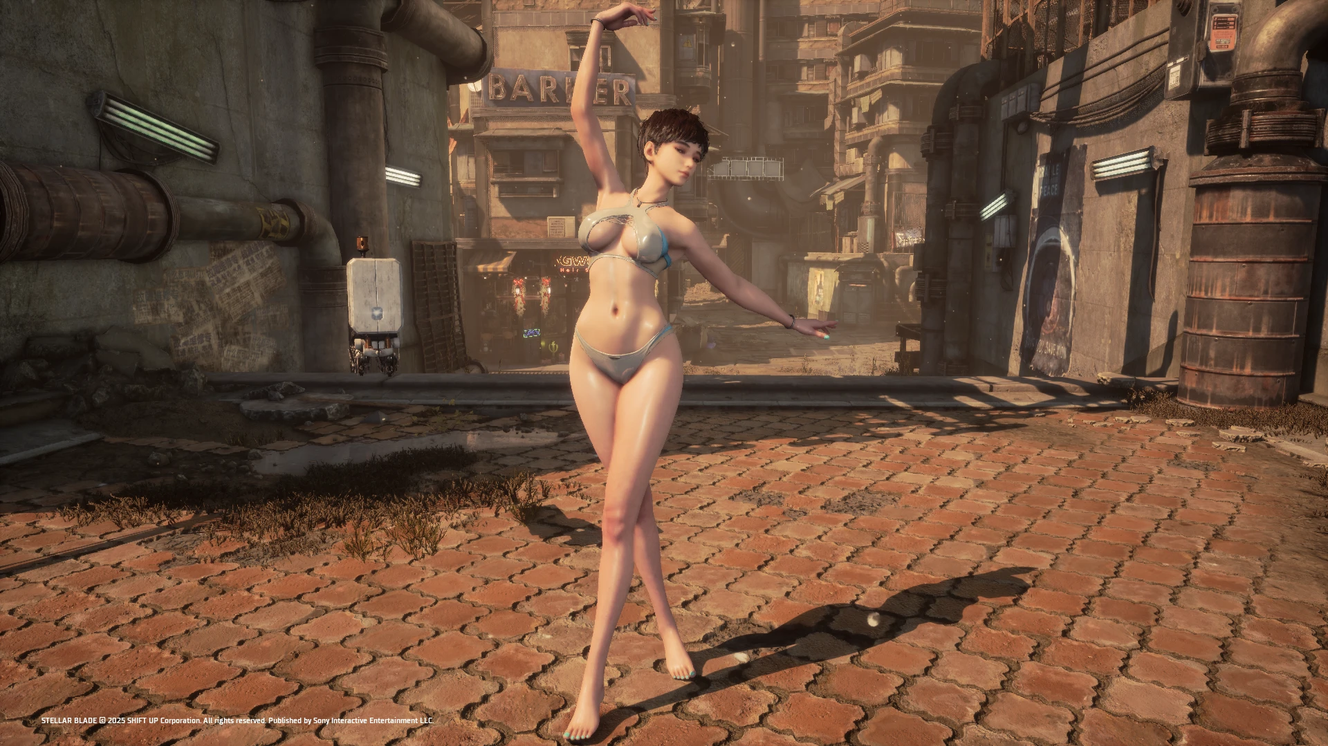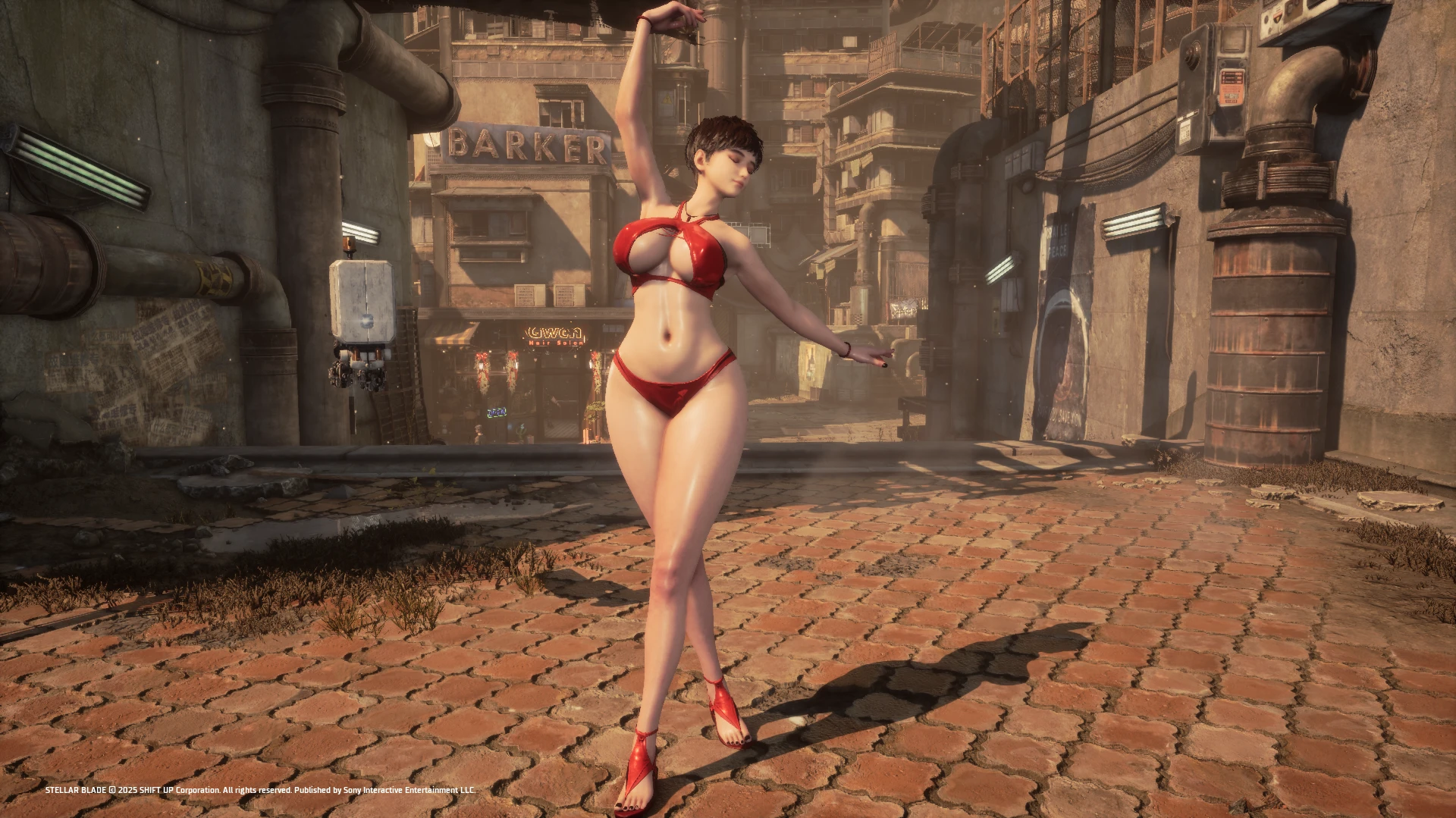 把《剑星》女主Eve全身替换为《第一后裔》超人气角色Sharen的绿洲派对皮肤,包含完整建模、贴图与物理骨骼,脚趾甲颜色已修正。