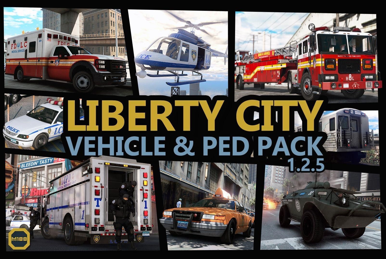 这款 Liberty City Vehicle & Ped Pack 是目前最全面的 Add-on 载具包之一,涵盖了从警察、消防到出租车的各种车型及行人模型。### 大神评测: