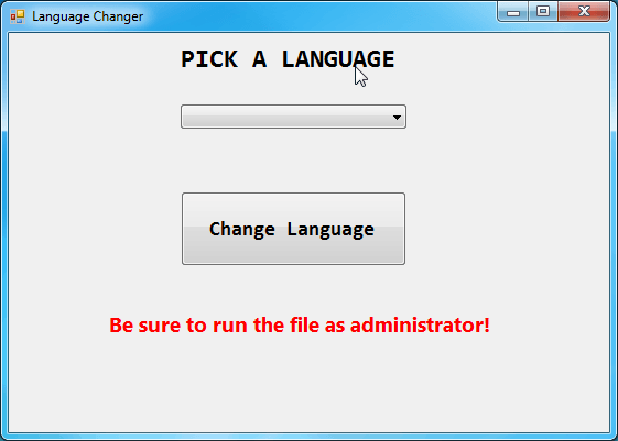 2. 右键点击 `LanguageChanger.exe` 文件,选择“以管理员身份运行”。