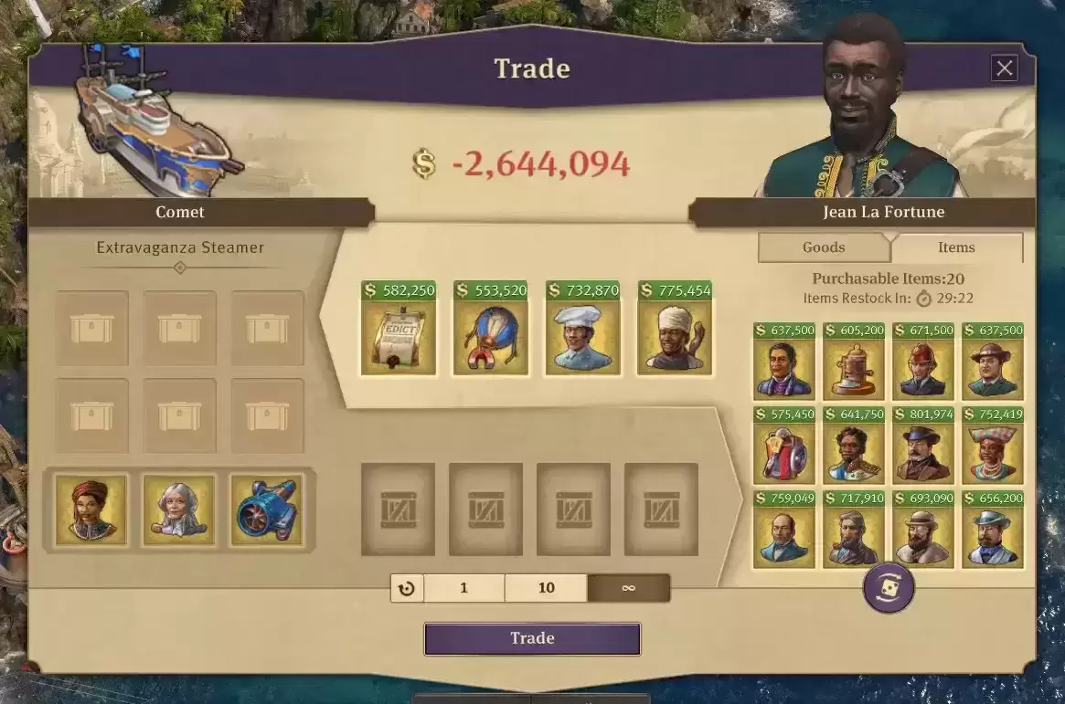解锁 Anno 1800 商人处所有 slotables 的 Mod