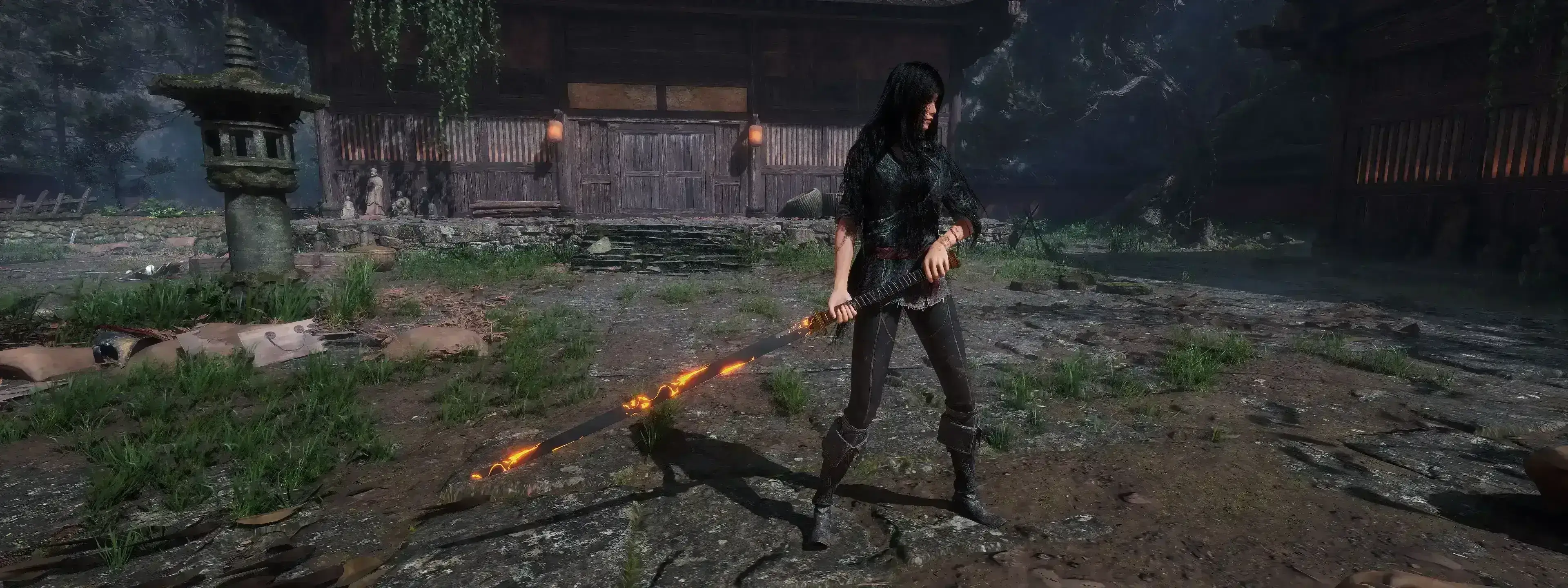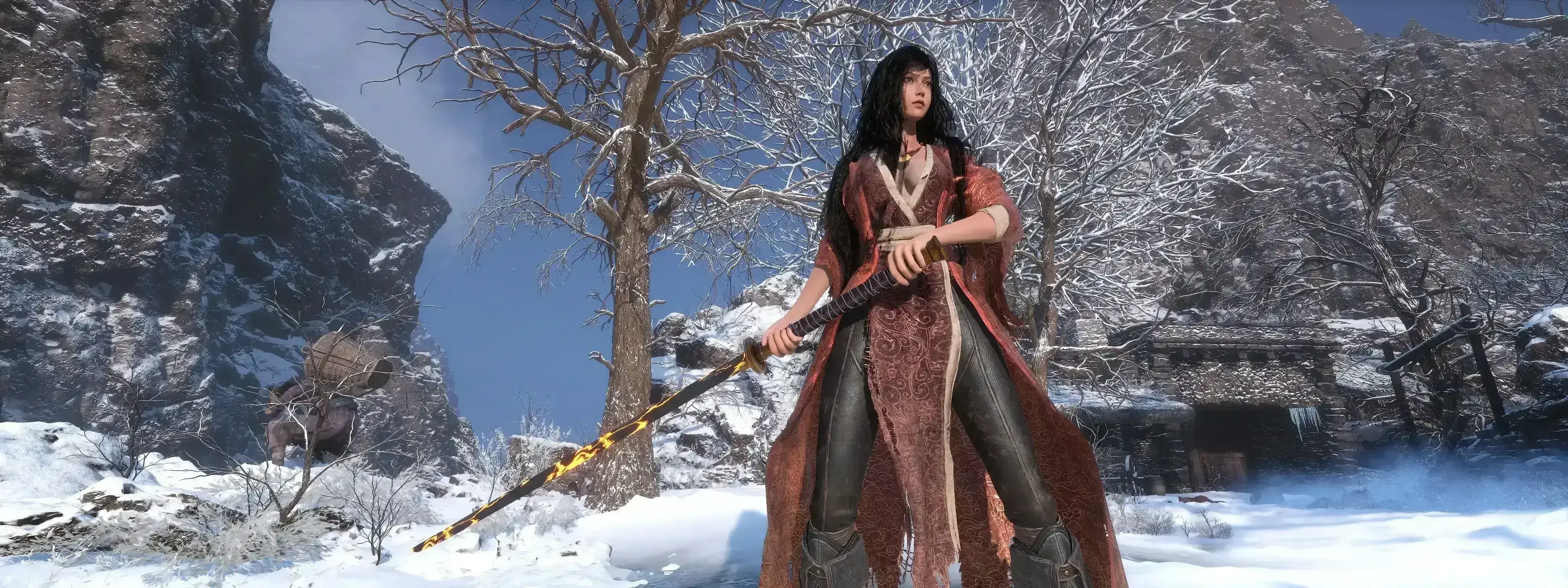 《明末渊虚之羽》发型替换MOD:将基础发型替换为《星刃》Raven同款长发型。